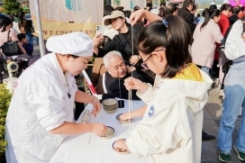非遗体验区前,年轻人们正跟着传承人学习搓条技艺,看似简单的动作却暗藏门道,大家在反复尝试中真切感受吴堡空心挂面的匠心所在。“没想到能亲手做非遗美食,比单纯品尝更有意义!” 一位参与体验的大学生说道,手中的半成品挂面已初见雏形。