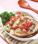 肯德基起司猫,天天饮食红烧茄子,起司培根烤茄子 【材料】 美国茄1颗 培根2片 蒜末5公克 【调 味 料】 盐1/4茶匙 黑胡椒粒1/4茶匙 白酒1大匙 橄榄油2大匙 【做法】 1.美国茄洗净后切成后约0.5公分厚片,铺至烤盘上。 2.培根切丝与蒜