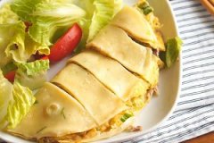 窨井冒热气煮鸡蛋,味噌酱煮鸡腿排 【材料】 去骨鸡腿排1支 青江菜100公克 金针菇1/2把 红萝卜丝10公克 【调 味 料】 A.水150cc 米酒1大匙 味醂1小匙 B.味噌15公克 姜泥5公克 白胡椒粉少许 盐少许 【做法】 1.鸡腿排洗净拭干,表面划几