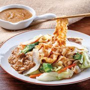 九品芝麻仙,夏士莲黑芝麻,芝麻酱拌面 【材料】 宽干面1人份 红萝卜10公克 猪薄片肉60公克 高丽菜100公克 秋葵2支 【调 味 料】 香浓芝麻酱100公克 冷开水适量 【做法】 1.将红萝卜切细丝、猪薄片肉切段、高丽菜切片、秋葵切斜段